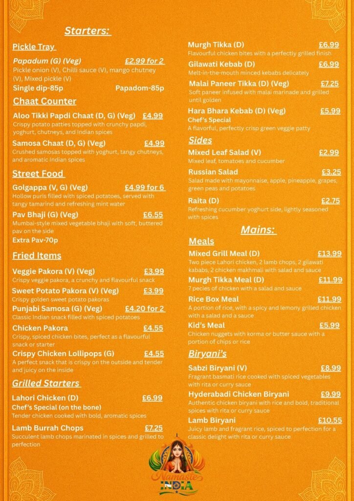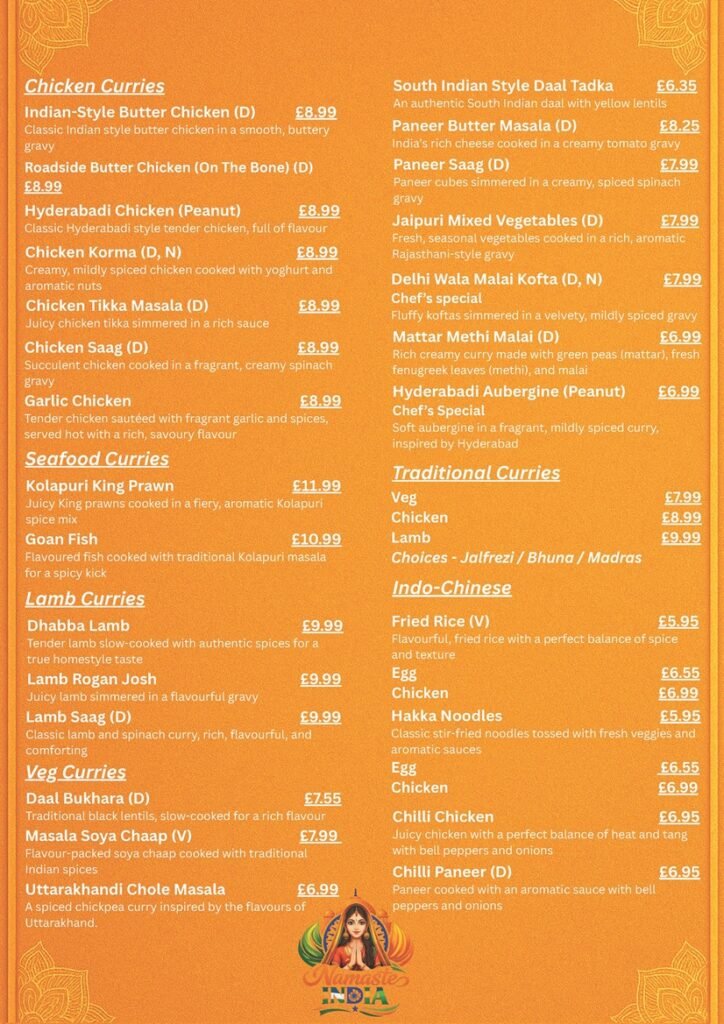 Namaste India is proud to be known as one of the best Indian restaurants in Edinburgh, providing authentic Indian food made from traditional Indian spices and fresh vegetables. Our Indian restaurant in Edinburgh, located at 109 Slateford Road, provides a warm and inviting environment where customers can indulge in delicious Indian food like rich and creamy curries, flavourful biryani, and traditional Indian dishes. For authentic Indian food in Edinburgh, Namaste India is the best place to dine and experience the real taste of Indian cuisine.